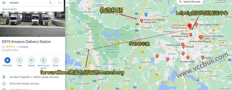 据官网介绍,德国转运仓位于一个名叫Merseburg的小镇,而Merseburg距离Leipzig这个地方仅有30分钟车程,Leipzig的哈勒国际机场是DHL下属专门负责航运的DHL Aviation公司主要欧洲枢纽,所以用forward2me德国仓转发到欧洲境内收货地址相较于其他转运公司几乎是最快的。亚马逊公司在Leipzig有个75000平米配送中心,使用他家德国仓在德国亚马逊海淘购物理论上有时效优势。