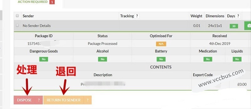 3.收到包裹后可以在这里进行查看,并且完善包裹信息,确认完成即可寄送回国