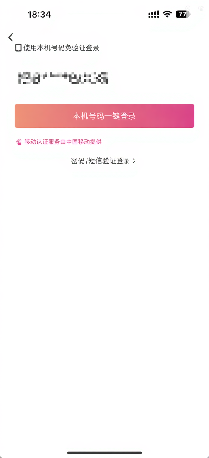 3、移动用户可以直接点击“本机号码一键登录“,联通、电信用户需要使用短信验证码登录。