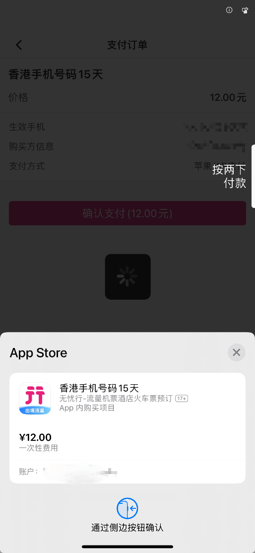 9、进行支付。IOS似乎买境外当地号只能使用内购,安卓是可以选择微信、支付宝付款的。